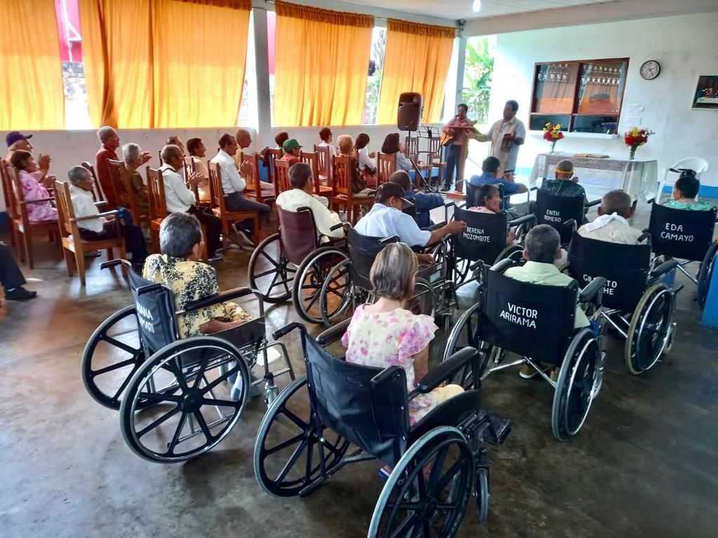 residentes del indicado servicio de protección social, durante su homilía el sacerdote